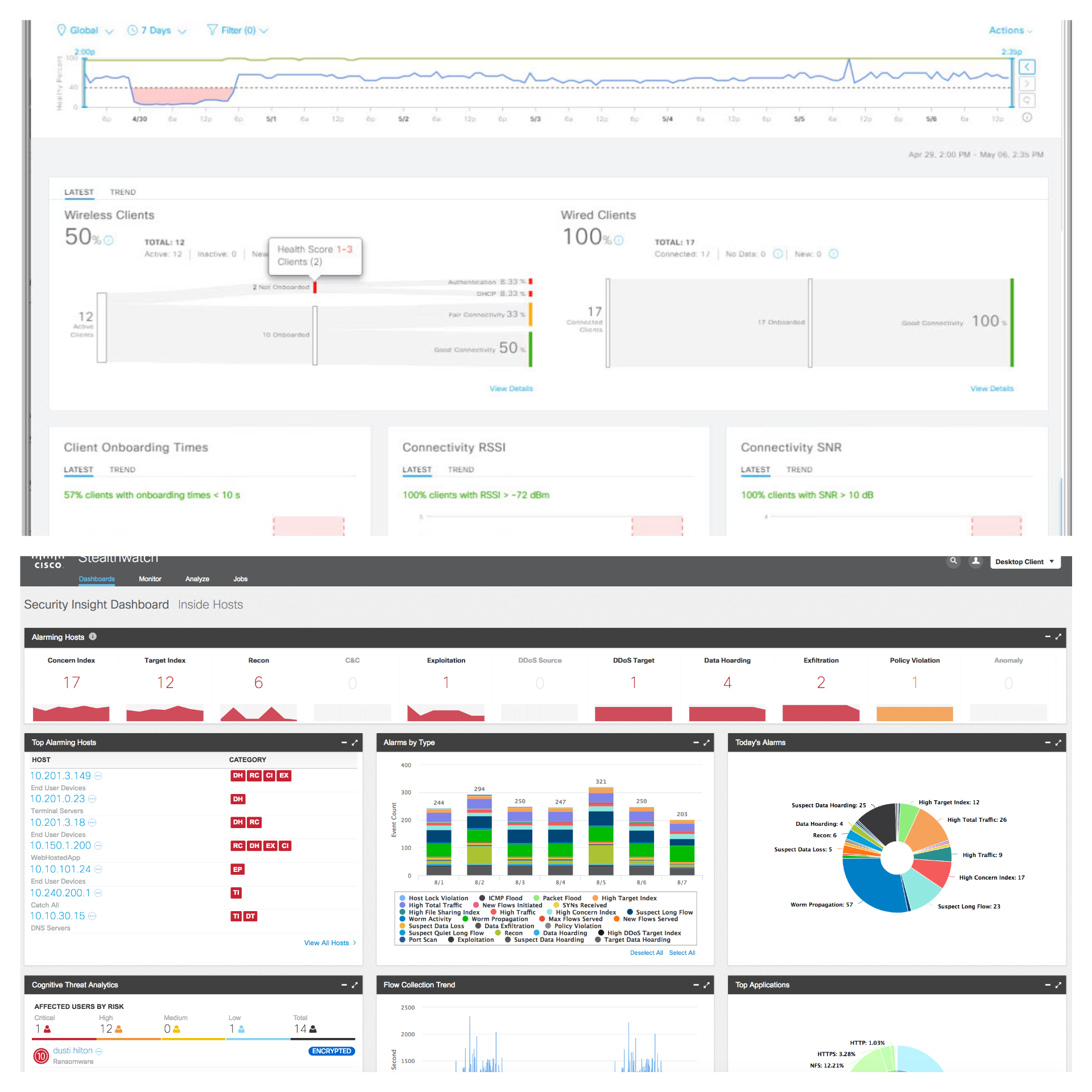 Cốt lõi của giải pháp quản trị là hệ thống Cisco DNAC, cho phép giám sát tập trung 360 độ toàn bộ mạng lưới 24/7. Nền tảng này không chỉ giúp đội ngũ IT của khách hàng tối ưu hóa năng suất mà còn trao cho họ khả năng chủ động kiểm soát toàn bộ hạ tầng theo thời gian thực. Song song đó, chúng tôi tích hợp nền tảng Cisco Stealthwatch để nâng cao năng lực an ninh mạng, thu thập và phân tích chuyên sâu lưu lượng dữ liệu nhằm nhận diện kịp thời các hành vi truy cập trái phép hoặc bất thường, từ đó đưa ra cảnh báo và đề xuất giải pháp xử lý tức thời.